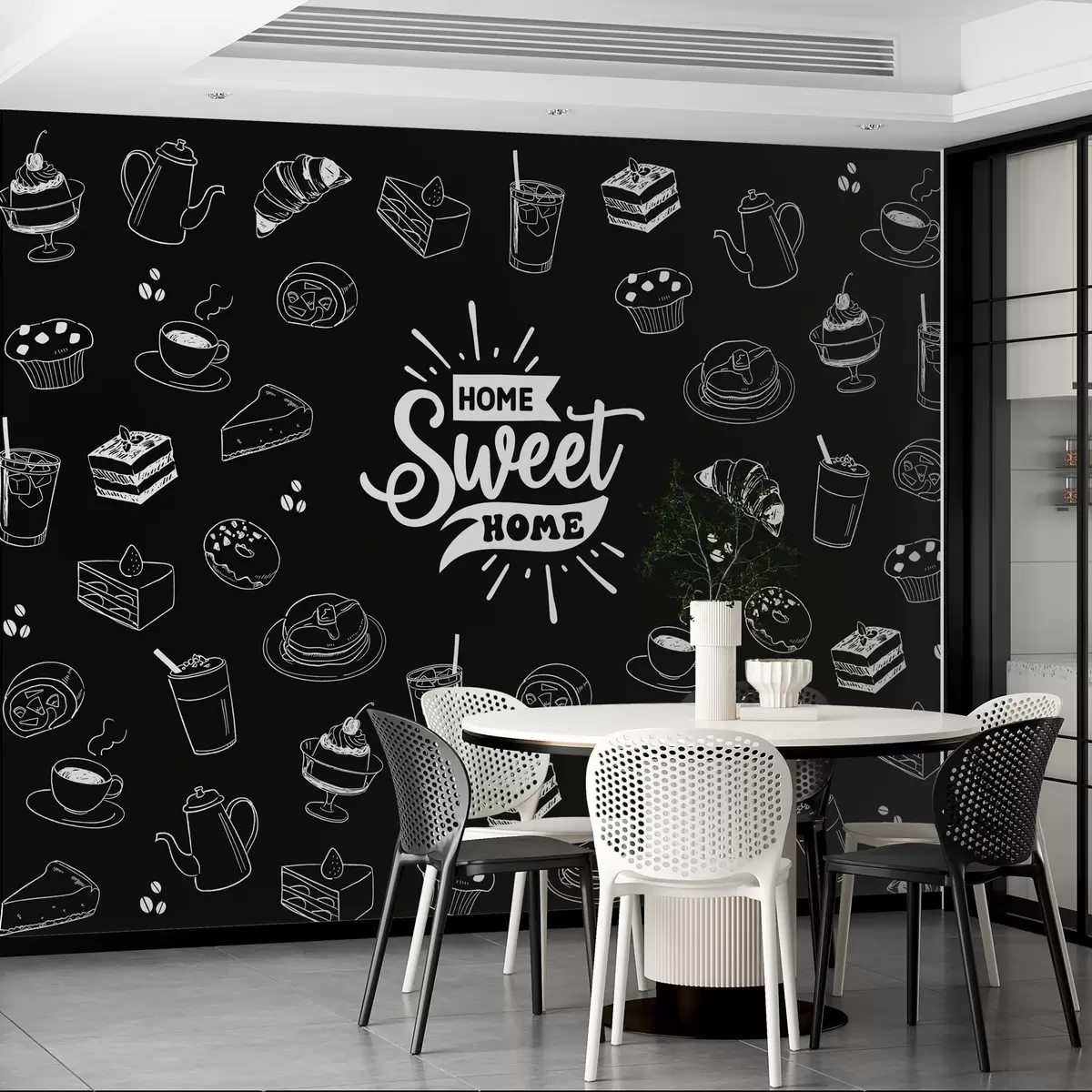 Фототапет черен тапет за кухнята с бели шарки Nr w02349