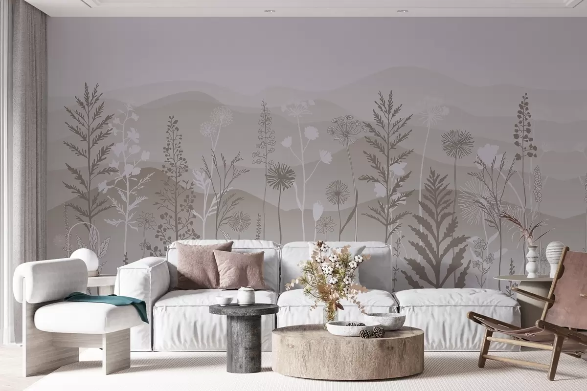 Фототапет тапети в еко стил, диви цветя в светлокафяви тонове Nr w02443v1