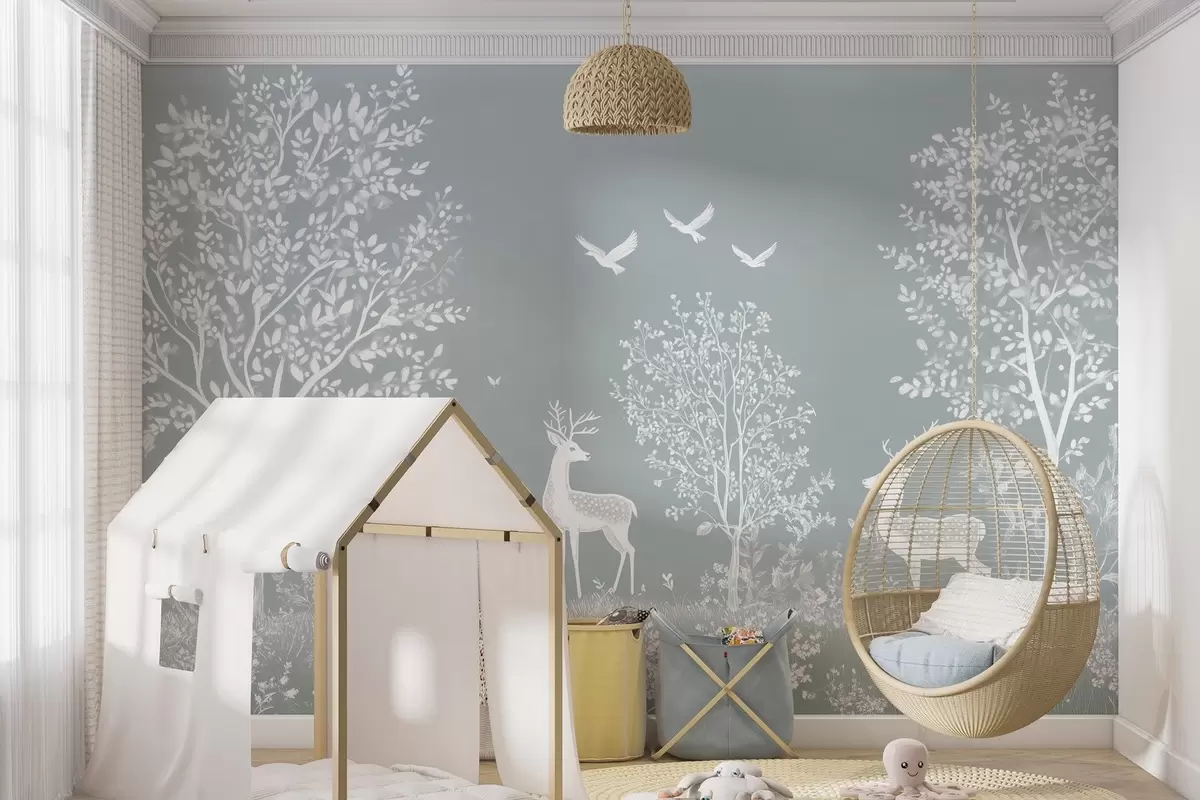 Фототапет гора с елени в стил рисунка с креда на сив фон Nr w02444v2