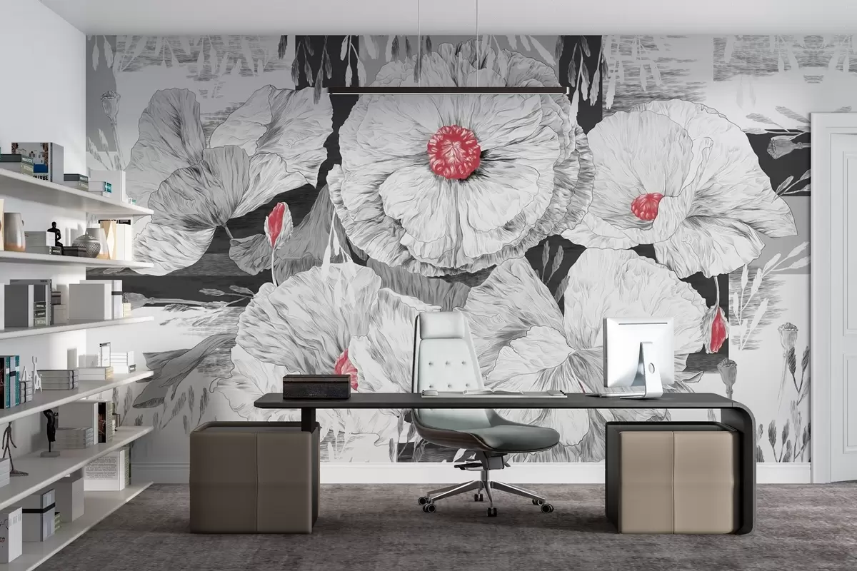 Фототапет Монохромни цветя в нежна елегантност Nr w02477