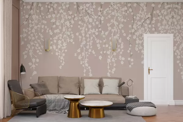 Фототапет Плавни деликатни клони с цветя на пастелен фон Nr w02479v2