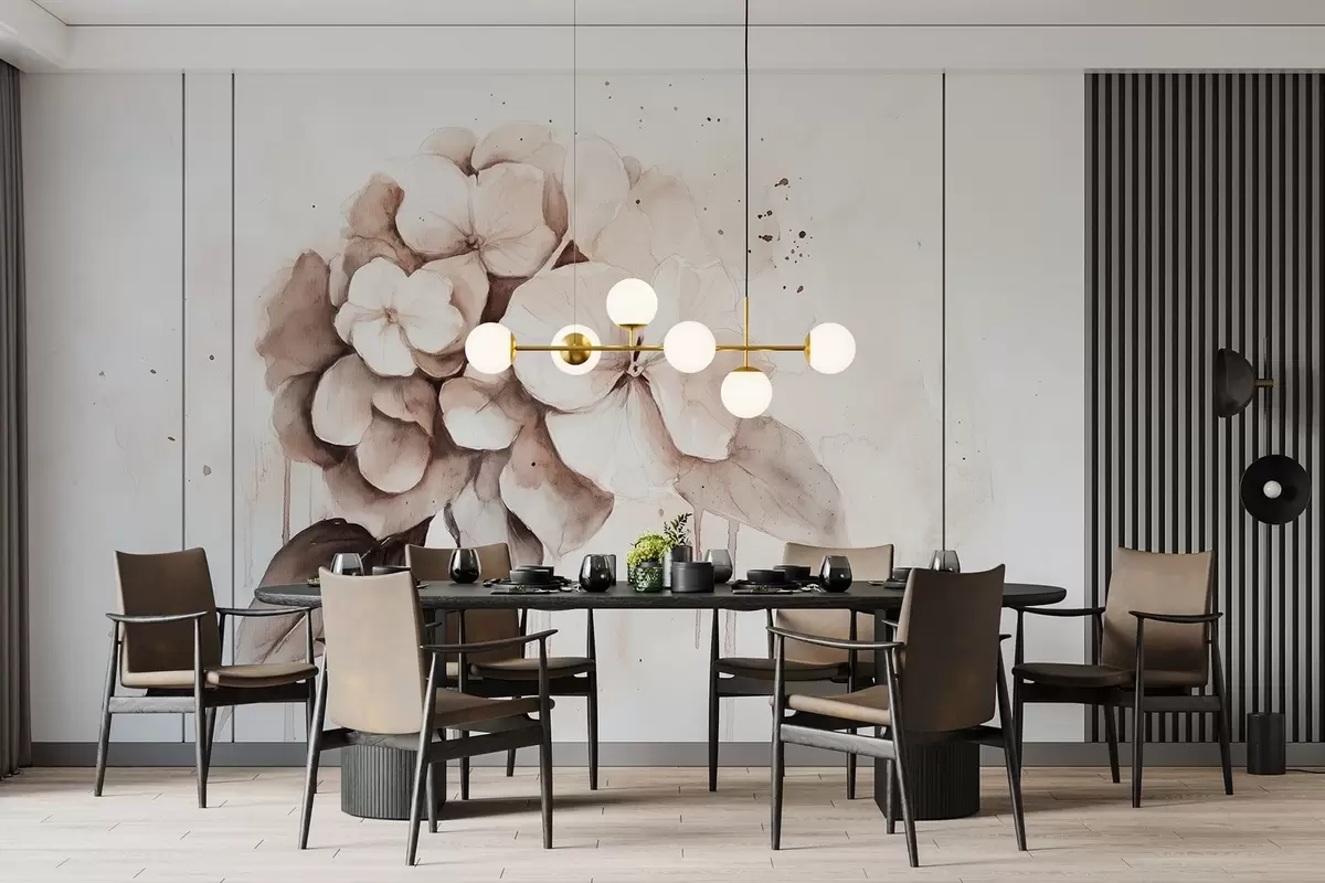 Фототапет Рисунка на хортензия, стил акварел, бежови цветове Nr w02483