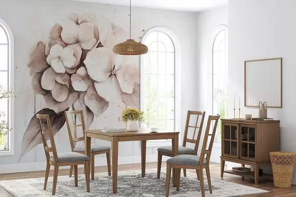 Фототапет Рисунка на хортензия, стил акварел, бежови цветове Nr w02483