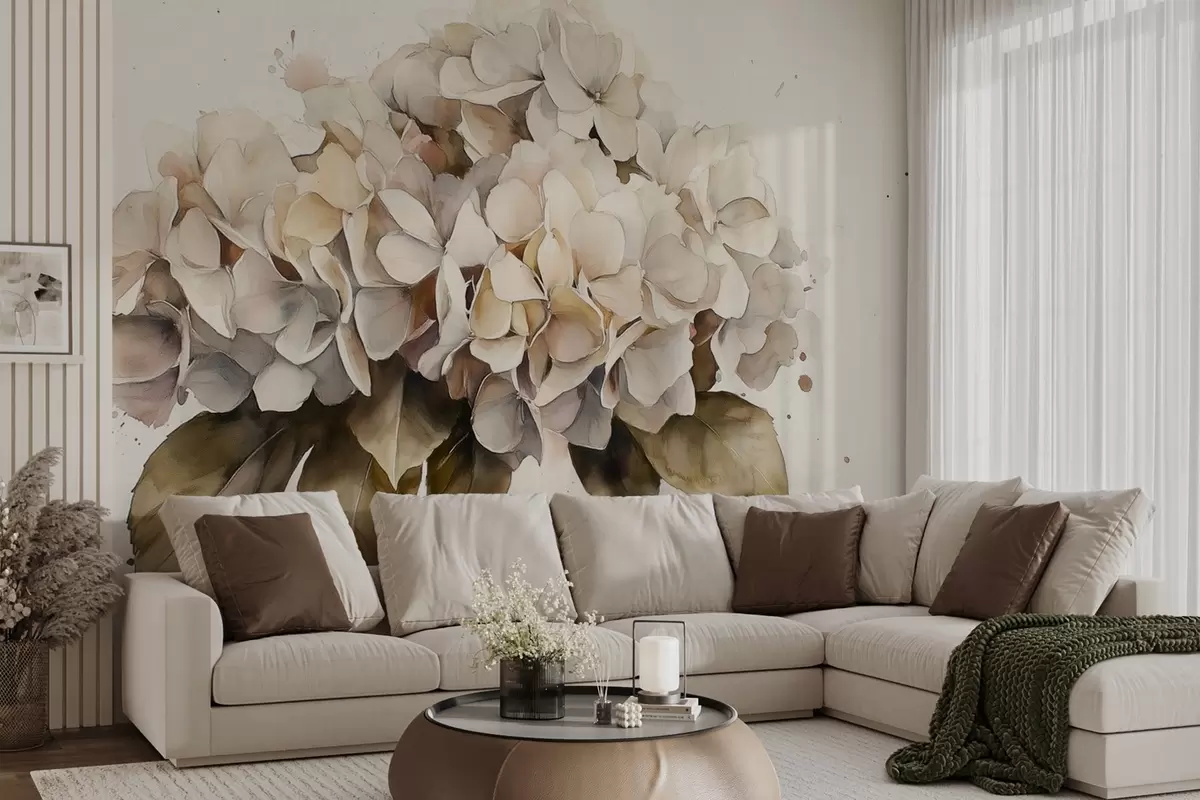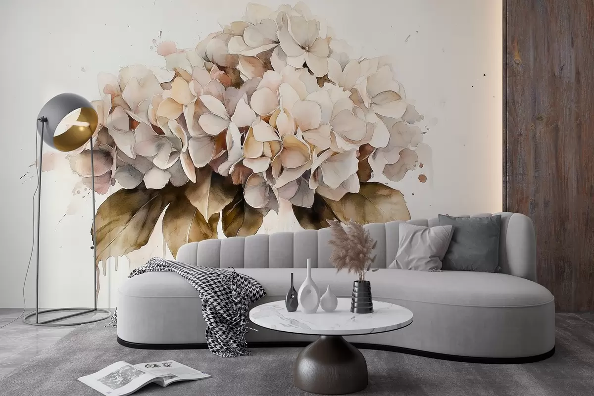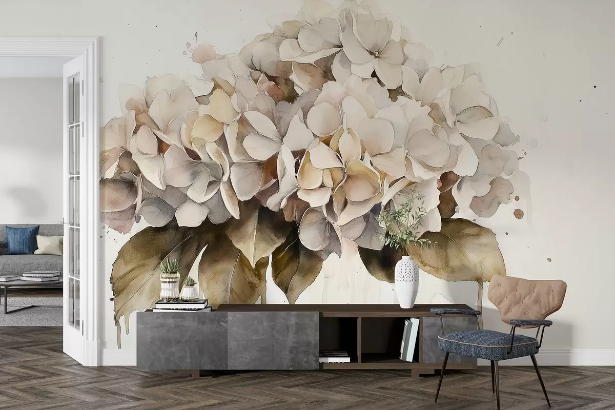 Фототапет Рисунка на цвете хортензия в акварелен стил, бежови цветове Nr w02485