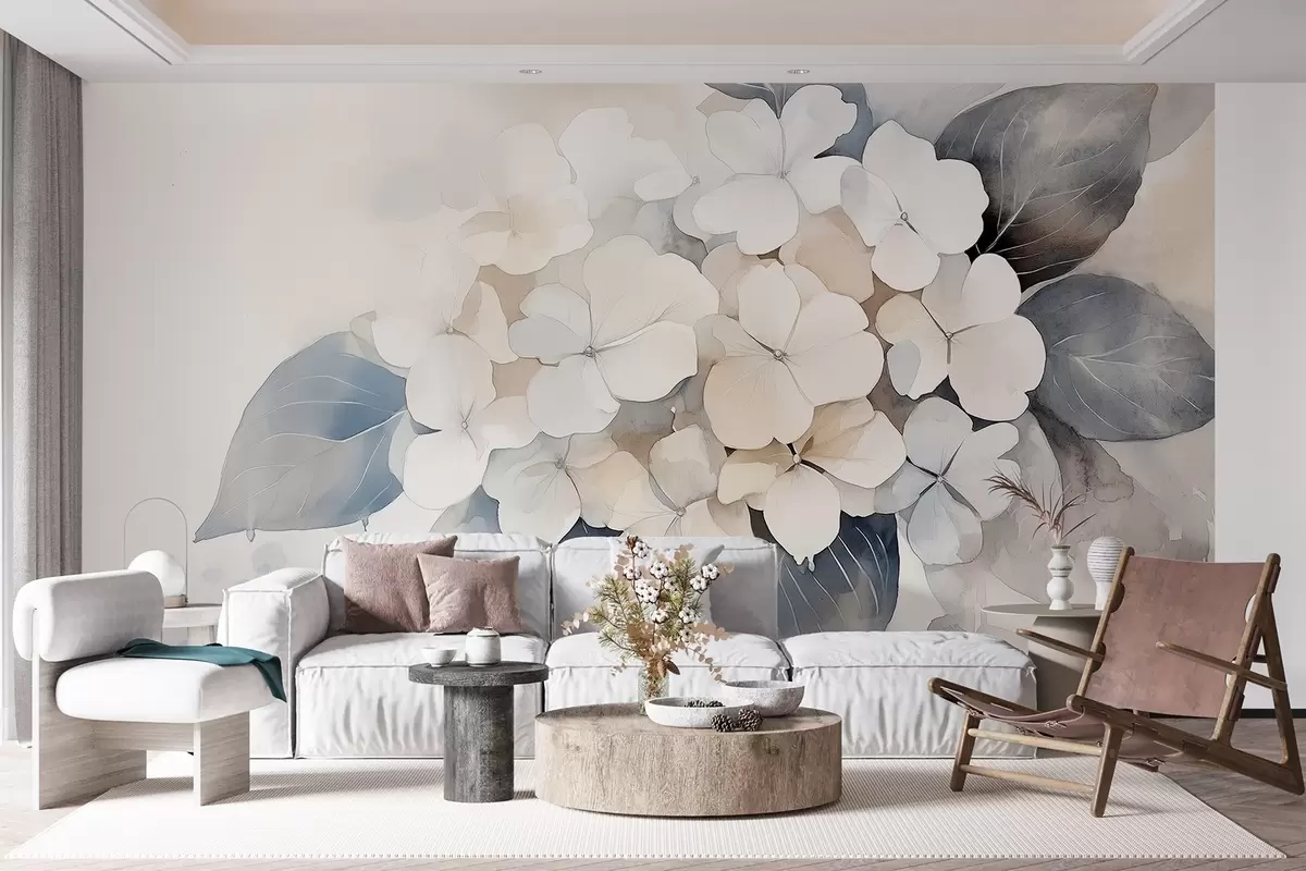 Фототапет Цвете хортензия, меки цветове, акварелен стил w02491