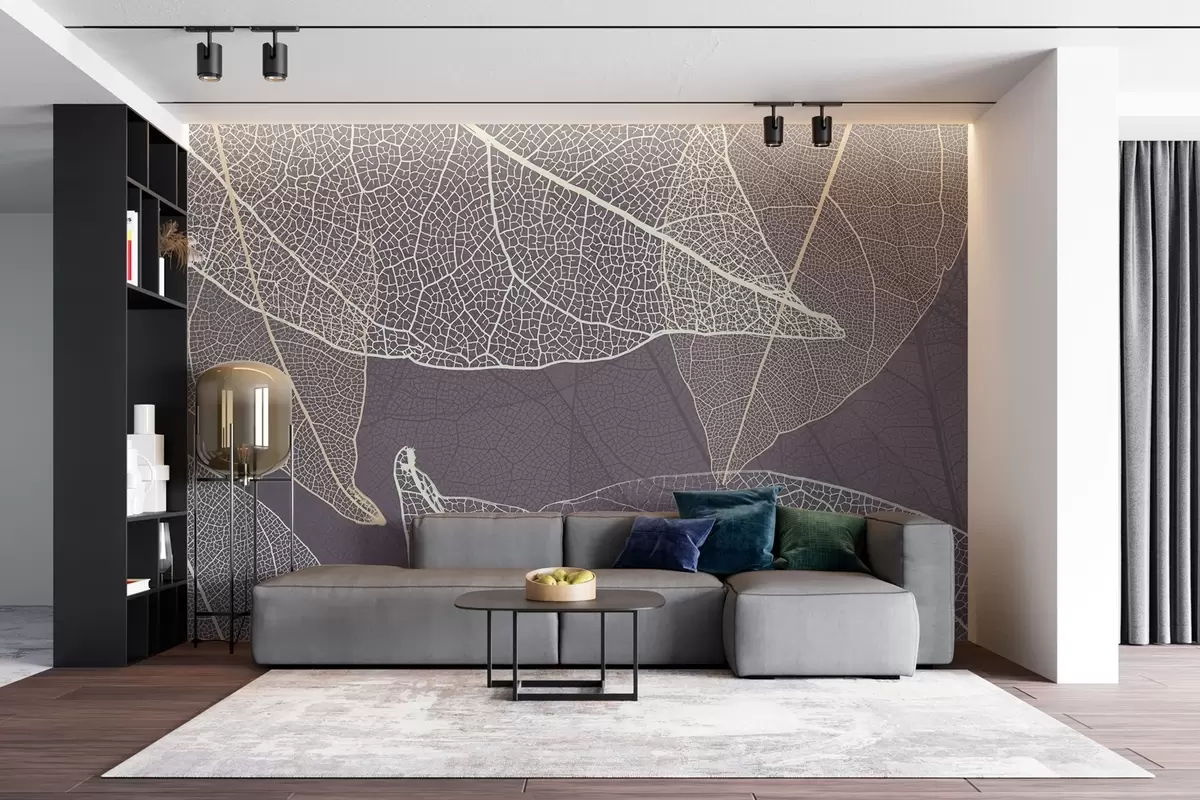 Фототапет близък план на листа с жилки в лилаво-сиви тонове Nr w02520v3