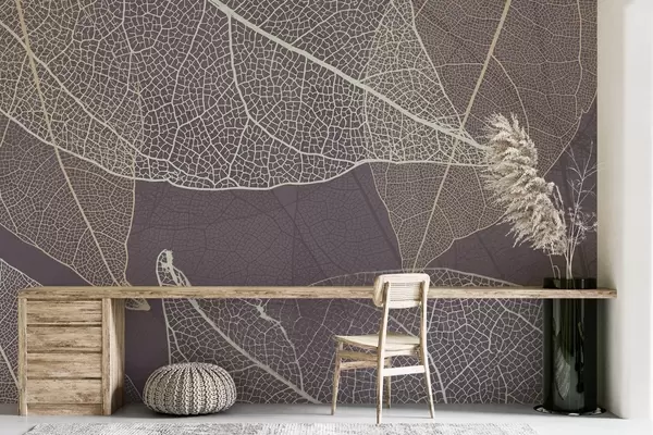 Фототапет близък план на листа с жилки в лилаво-сиви тонове Nr w02520v3