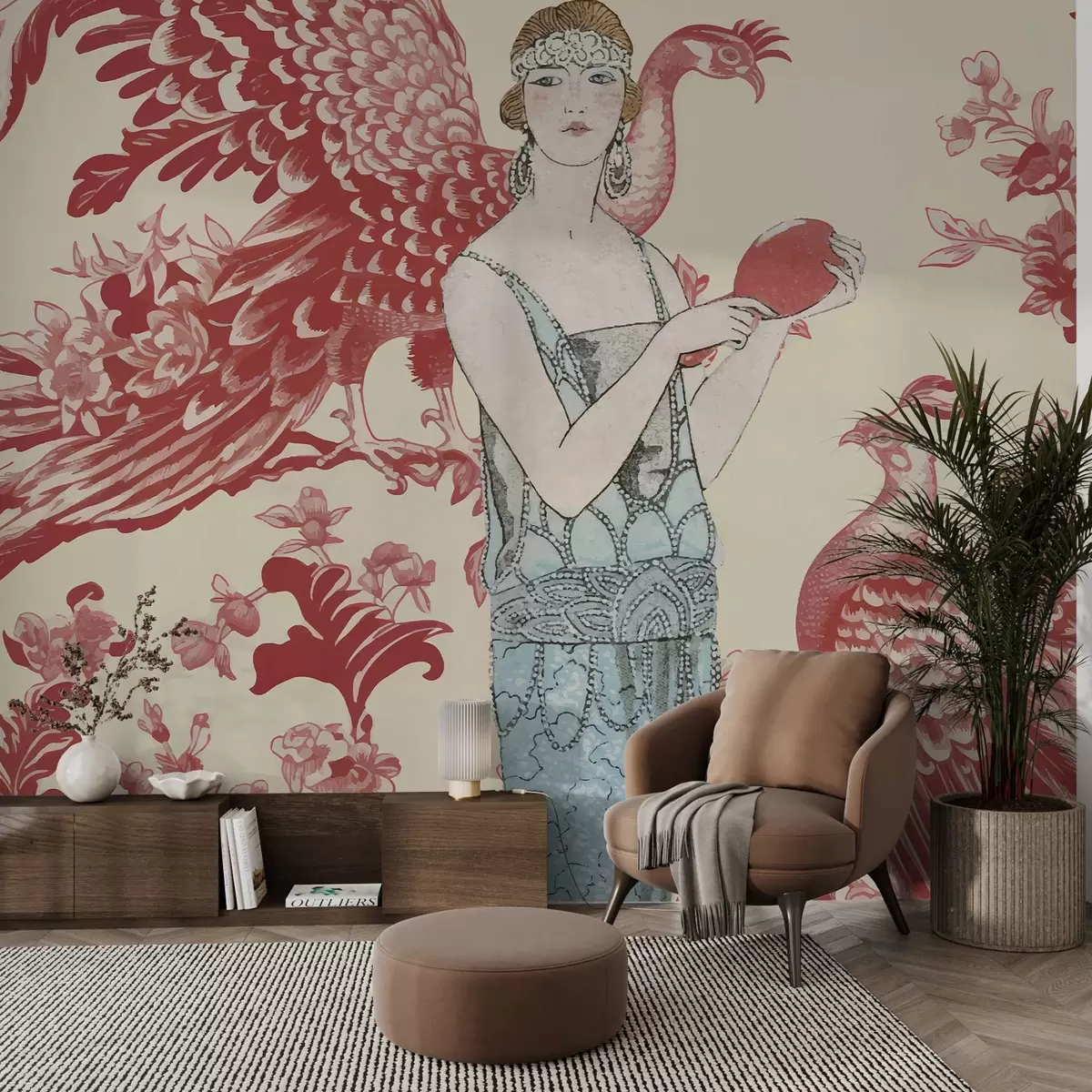 Фототапет Елегантен винтидж флорален модел с жена в червени цветове Nr w02532v1
