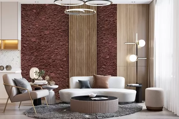 Фототапет Стена в стил мосю с дървен панел, пищни бордо цветове w02656v1