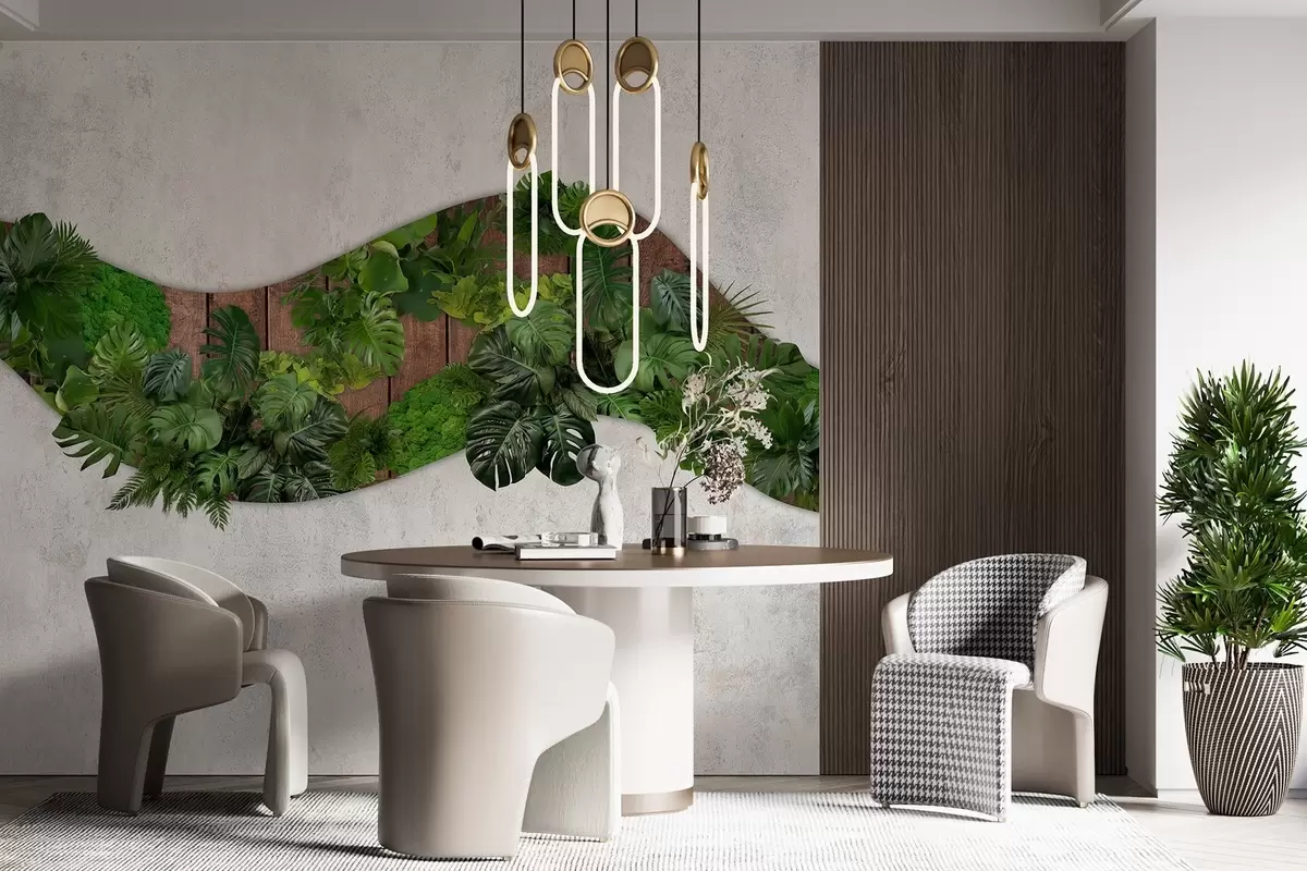 Фототапет Орнамент за стена с растения, мъх, палмови листа, дървен фон Nr w02658