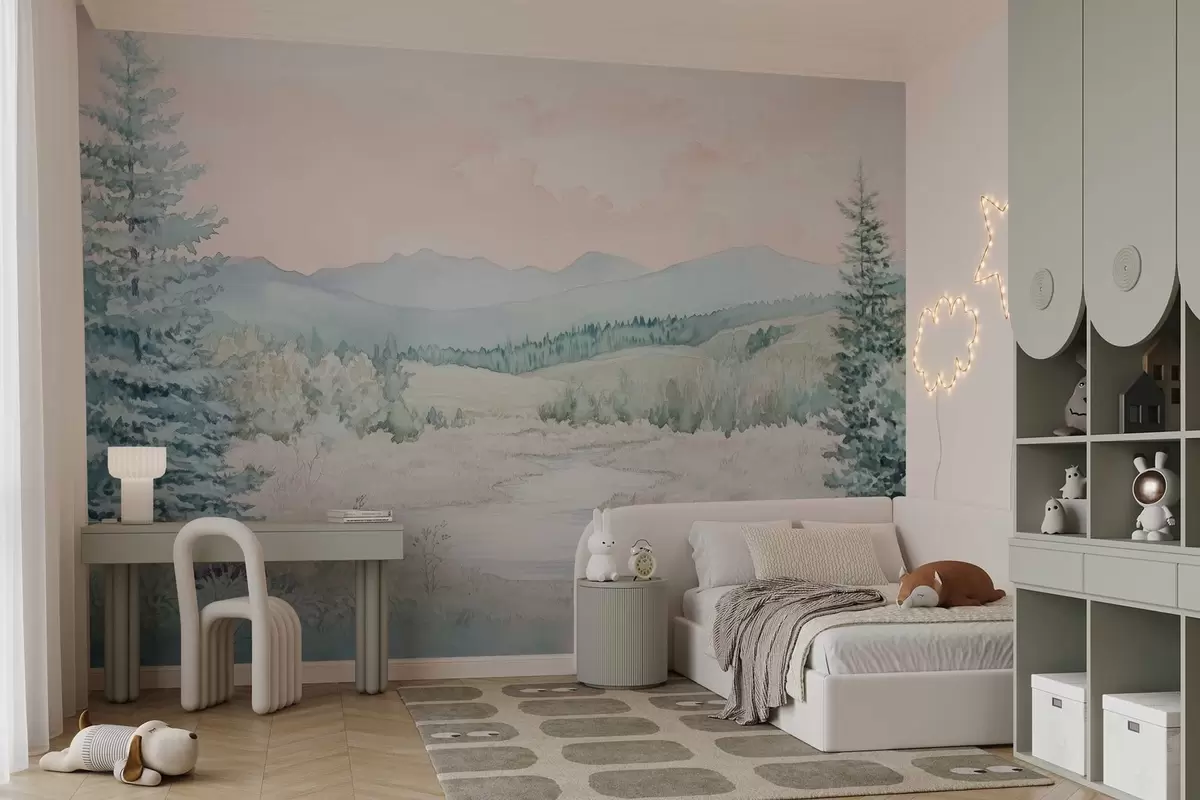 Фототапет пейзаж в акварелен стил с елхи Nr w02689