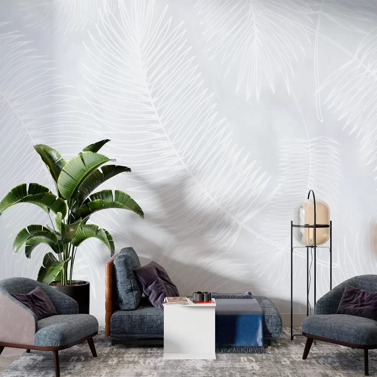 Фототапет Силуети на бели листа върху текстуриран фон Nr w02894v1