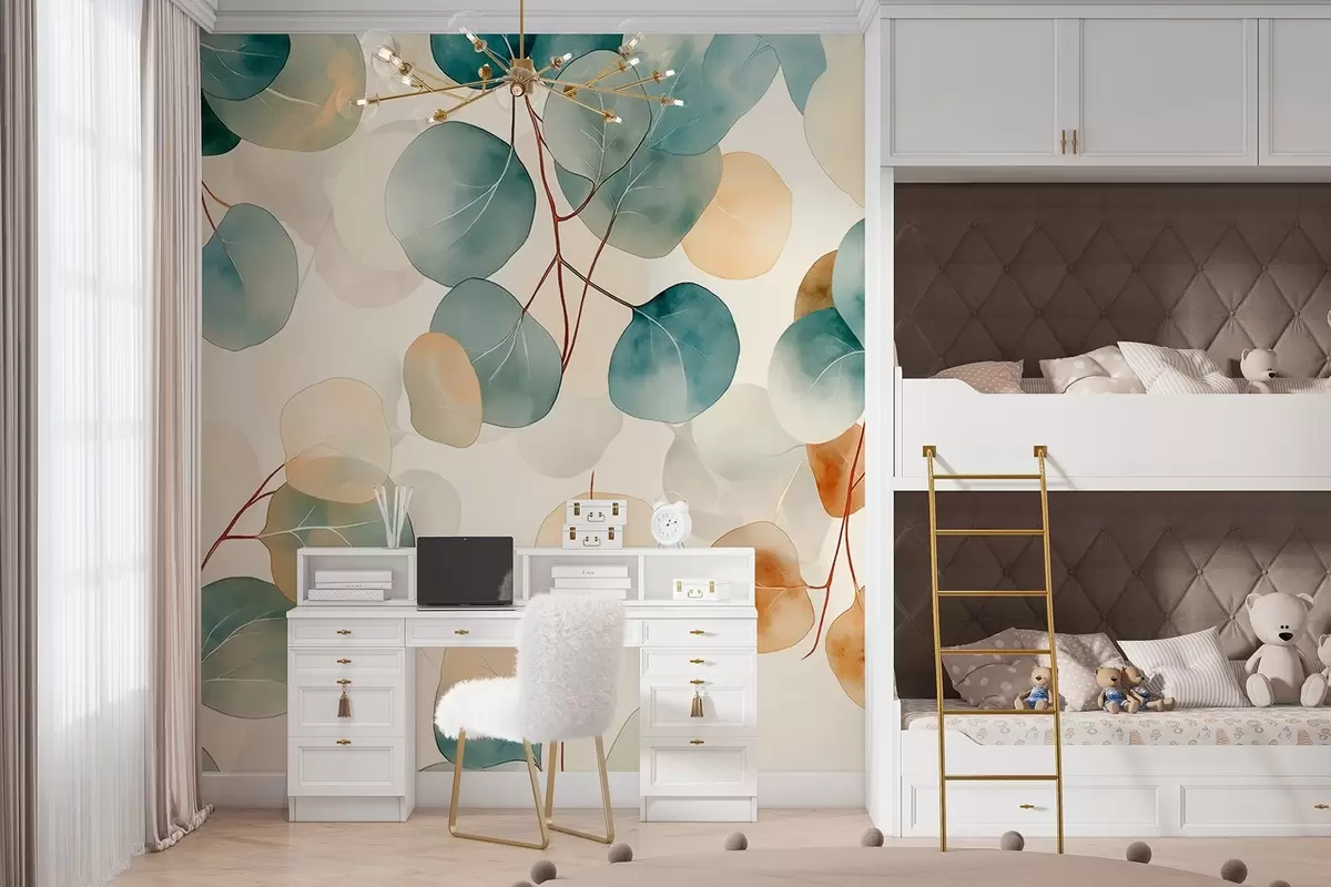 Фототапет Рисунка на евкалипт в акварелен стил, меки пастелни цветове, флорални Nr w02938
