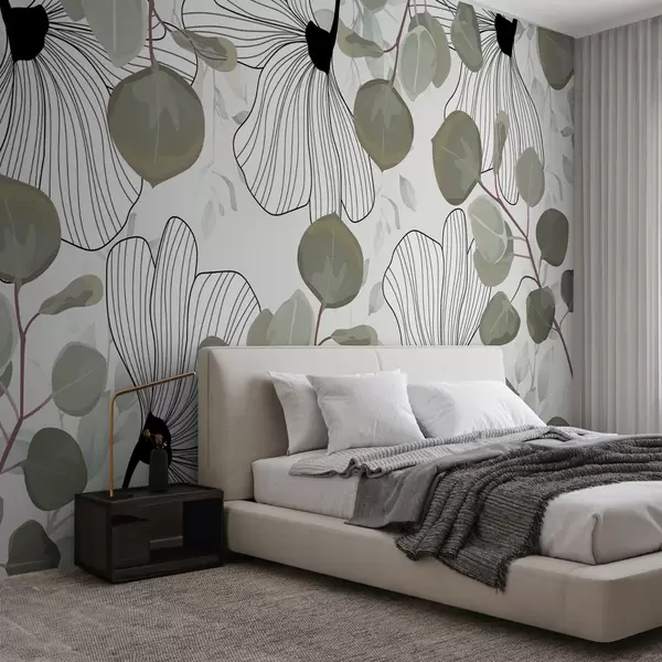 Фототапет Композиция от бели цветя и зелени листа Nr w02955