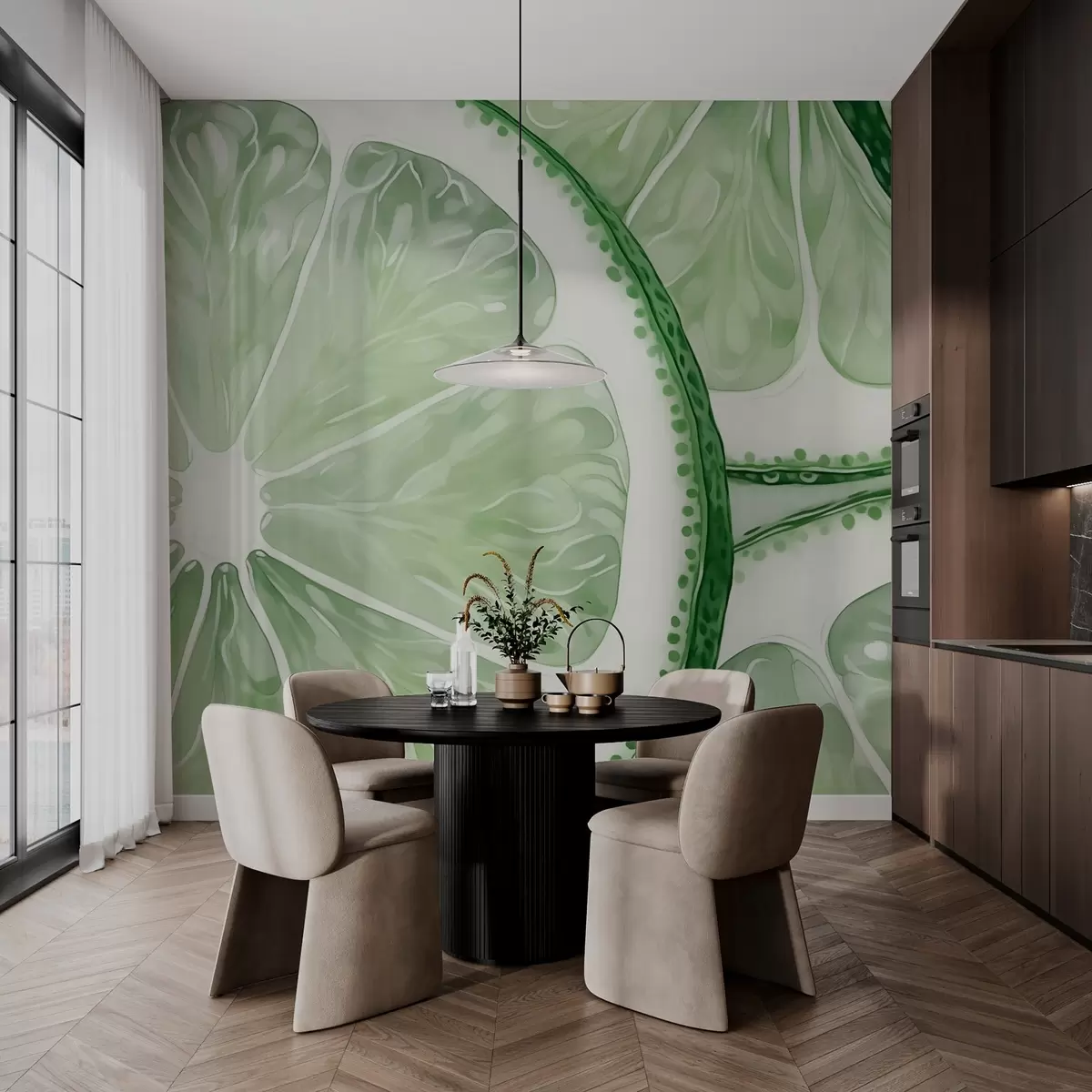 Фототапет Цитрусови кръгове, имитация на акварелно зелен нюанс Nr w03026