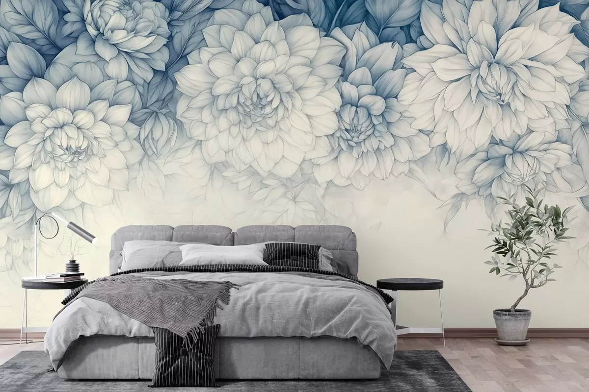 Фототапет пищни едноцветни хризантеми, висящи отгоре Nr w03110