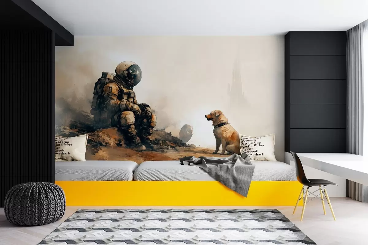 Фототапет постапокалиптичен пейзаж с астронавт и куче Nr w03115