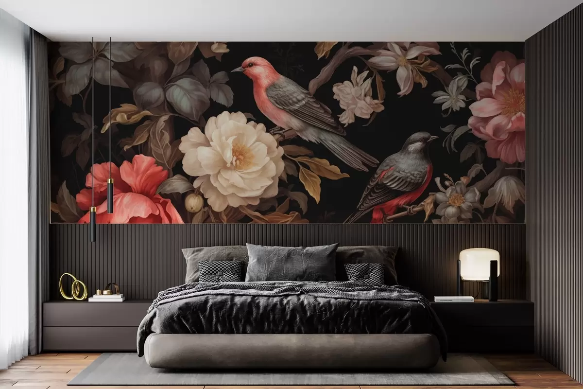 Фототапет Птици и цветя в тъмни акценти Nr w03131