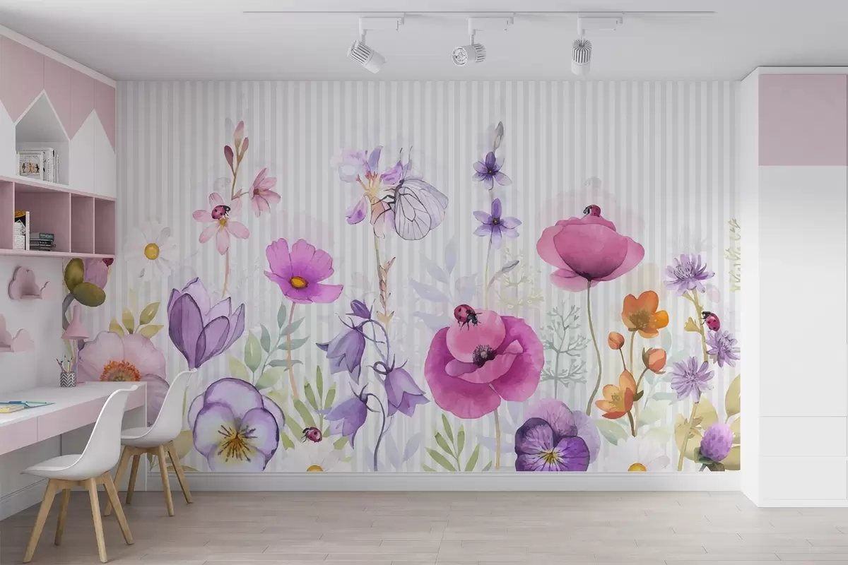Фототапет Ярки диви цветя на раиран фон Nr w03295