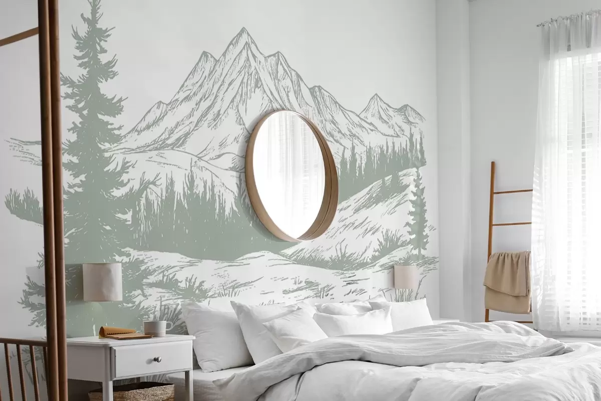 Фототапет Планински пейзаж с борови дървета, гора, природа, мек зелен цвят Nr w03344v1