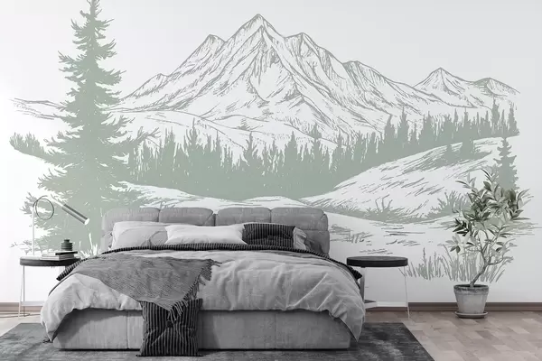 Фототапет Планински пейзаж с борови дървета, гора, природа, мек зелен цвят Nr w03344v1