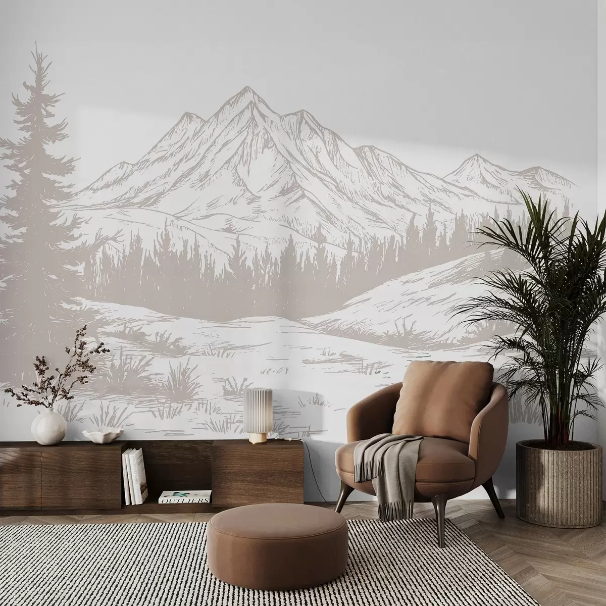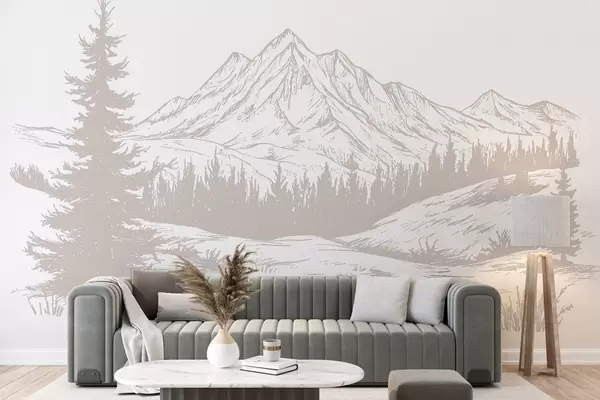 Фототапет Планински пейзаж с борови дървета, гора, природа, мек бежов цвят Nr w03344v3