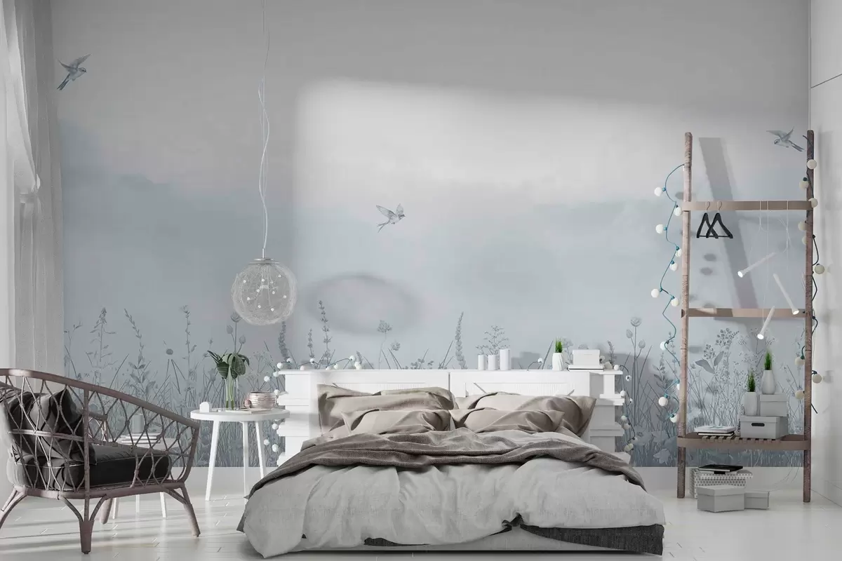Фототапет Диви цветя и мъгливо небе в сини тонове Nr w03391v1