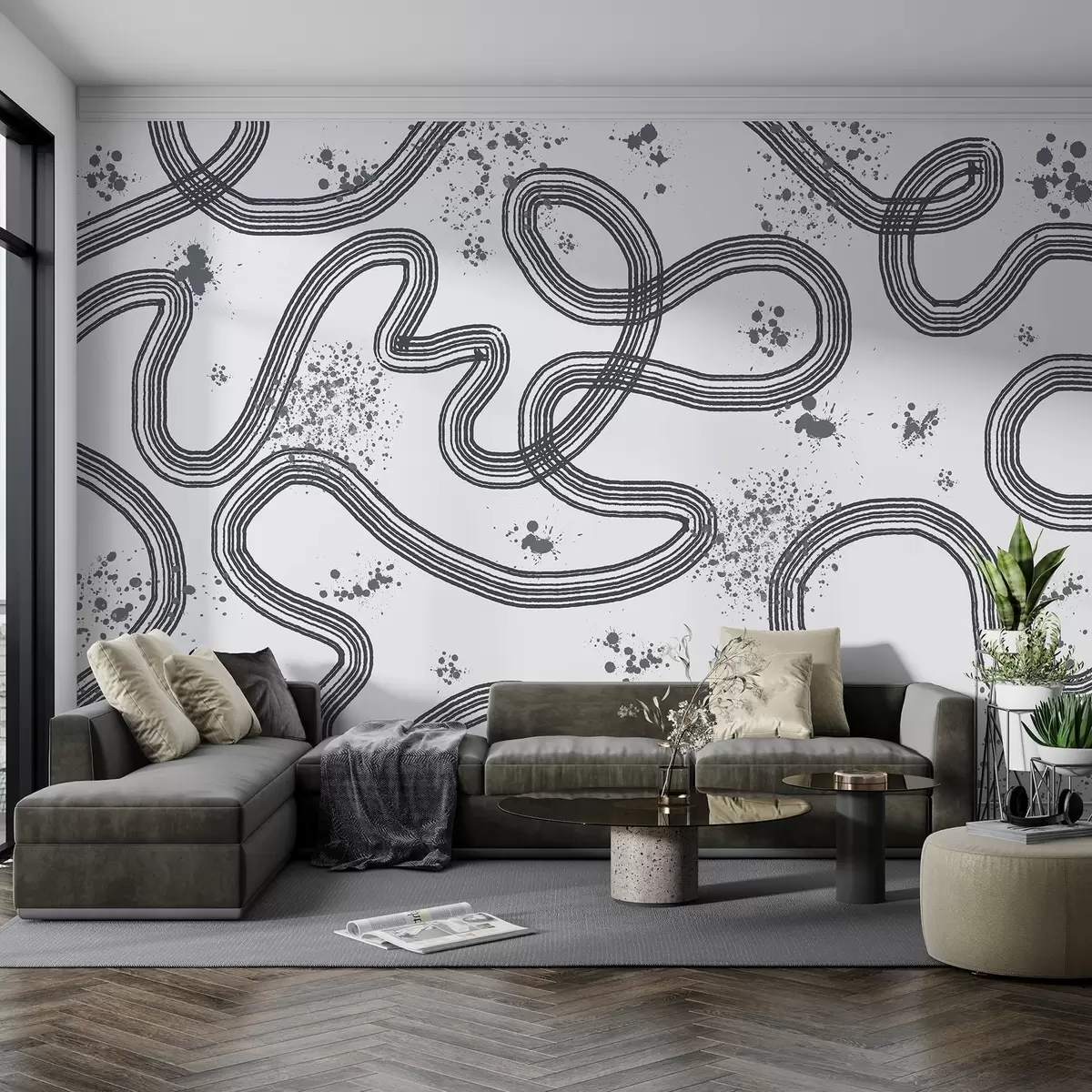 Фототапет Линейна рисунка, пръски боя, минимализъм, сив цвят Nr w03408v2