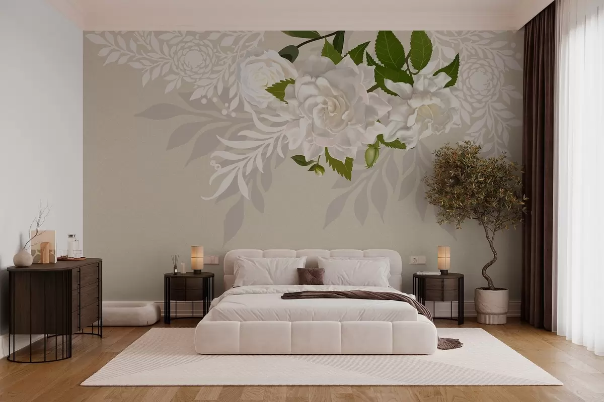 Фототапет бели рози на бежов шарен фон Nr w03453