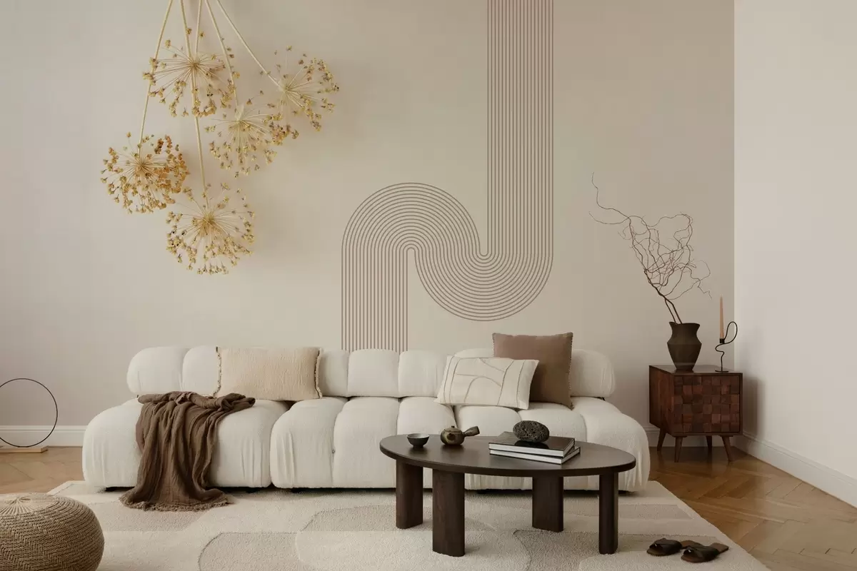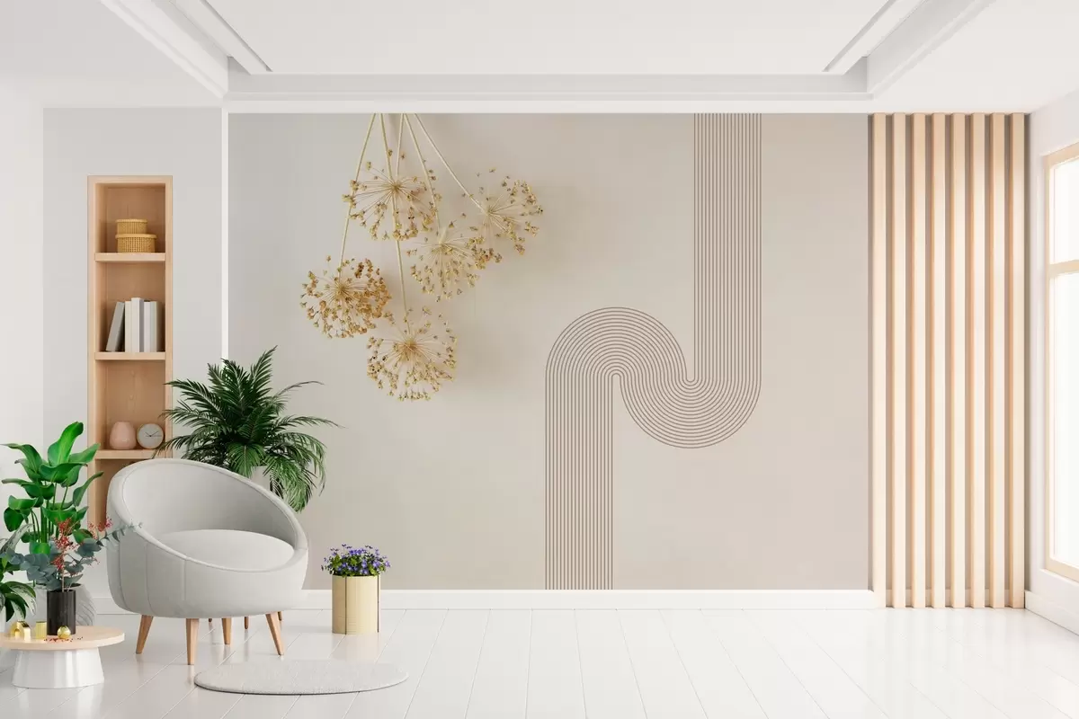 Фототапет елегантни сухи цветя и линии в бежови тонове Nr w03455