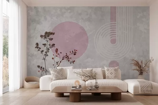 Фототапет гръндж модерна геометрия със сухи цветя Nr w03459