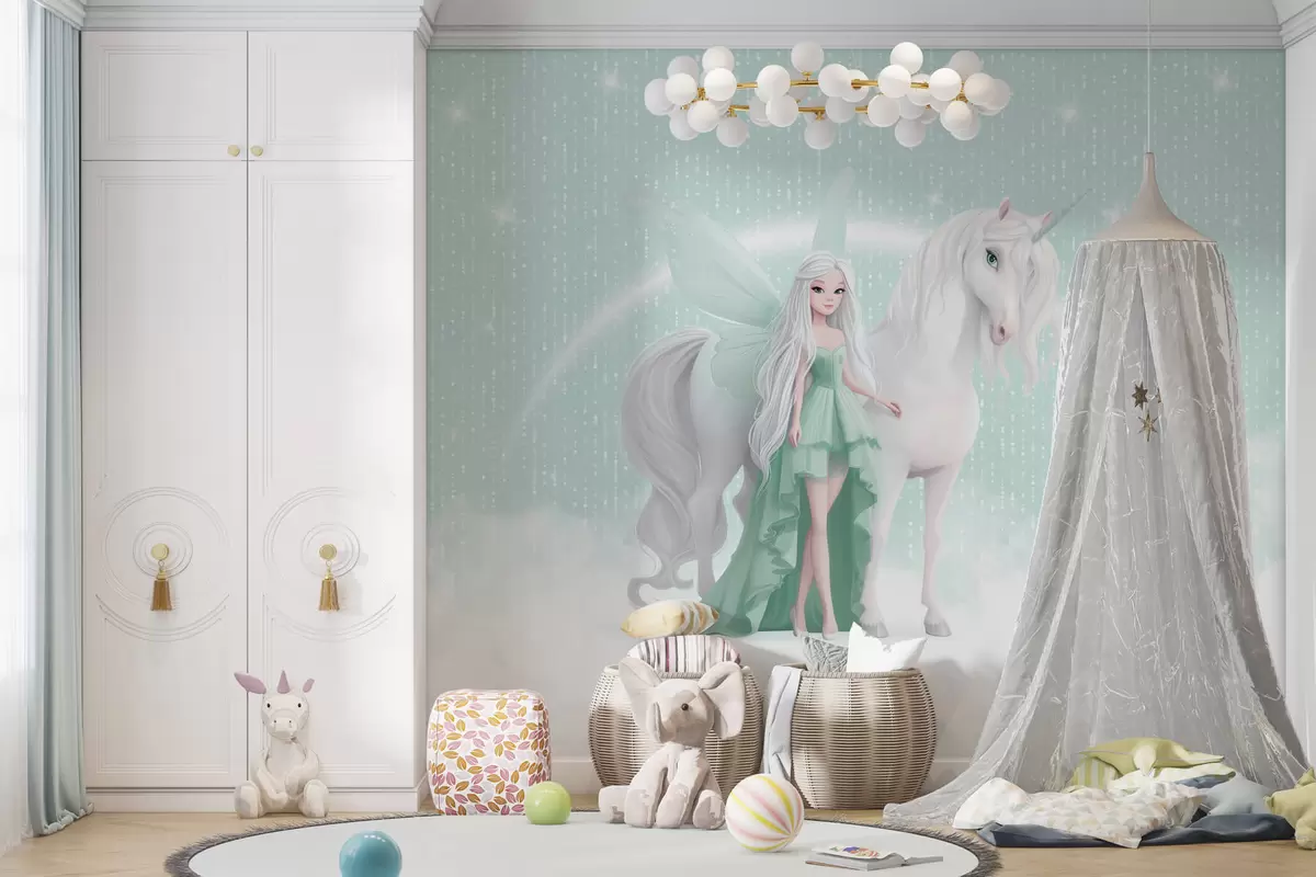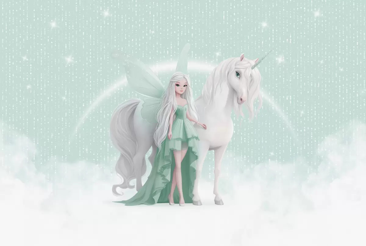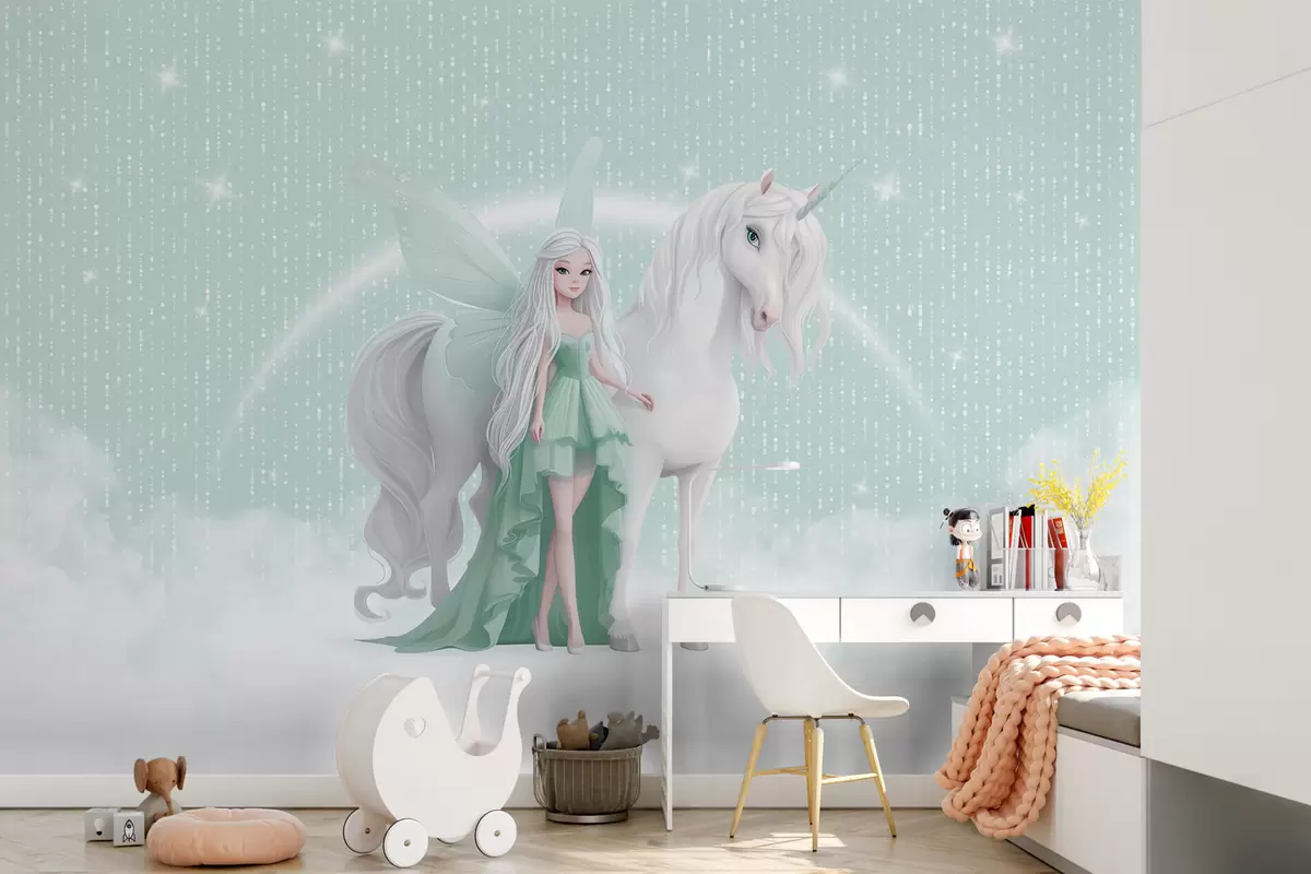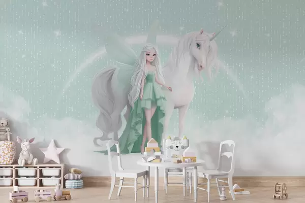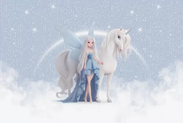 Фототапет Фея с еднорог сред облаците Nr w03527v2
