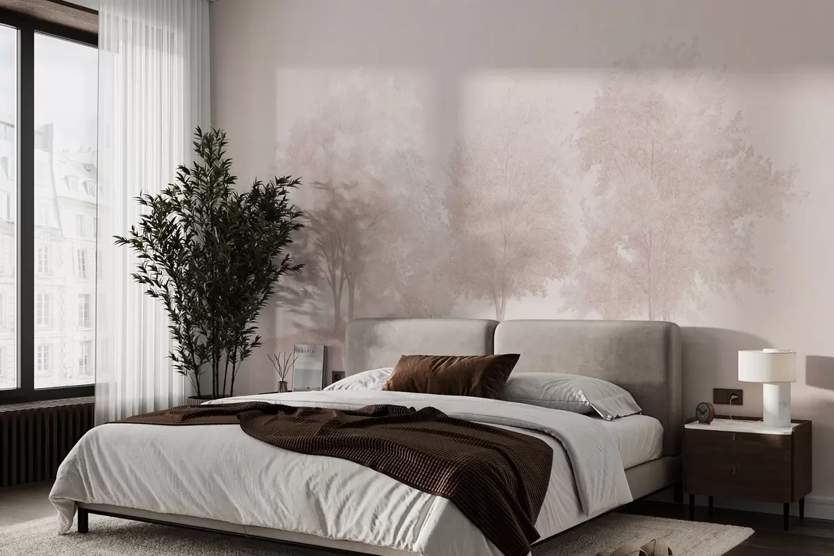 Фототапет Цъфнали дървета, пролет, рисунка с молив, розови цветове, природа Nr w03549