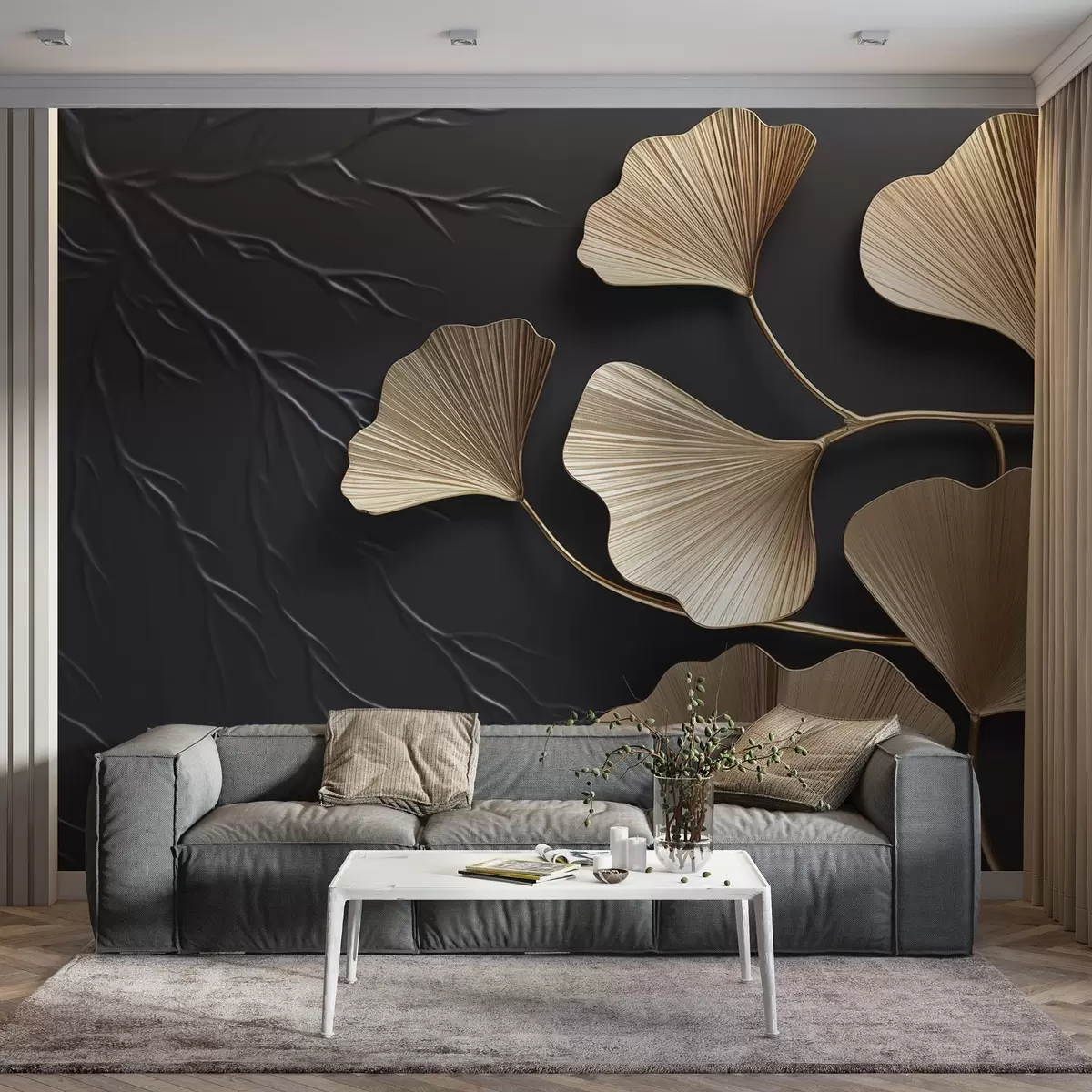 Фототапет Обемни листа върху тъмна стена Nr w03650v1