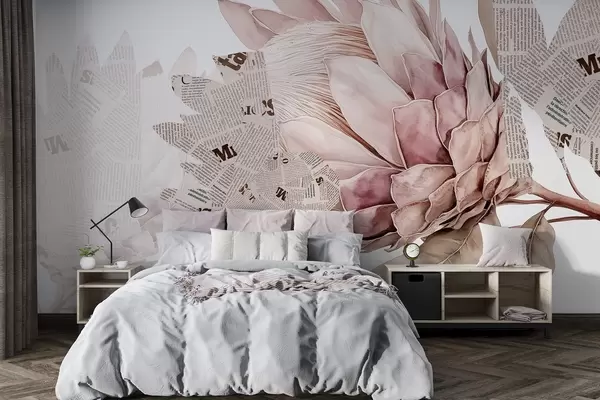 Фототапет Цветя на протея, вестникарско изкуство, флорални, тропически, пастелни бежови цветове Nr w03667v4