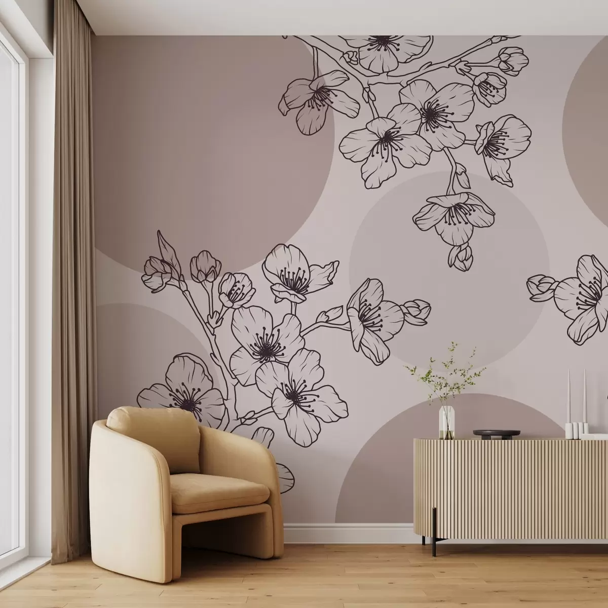 Фототапет Клони с цветя върху цветни кръгове в кафяви тонове Nr w03712