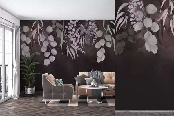Фототапет Тропически листа на тъмно бордо фон, флорални Nr w03752v1