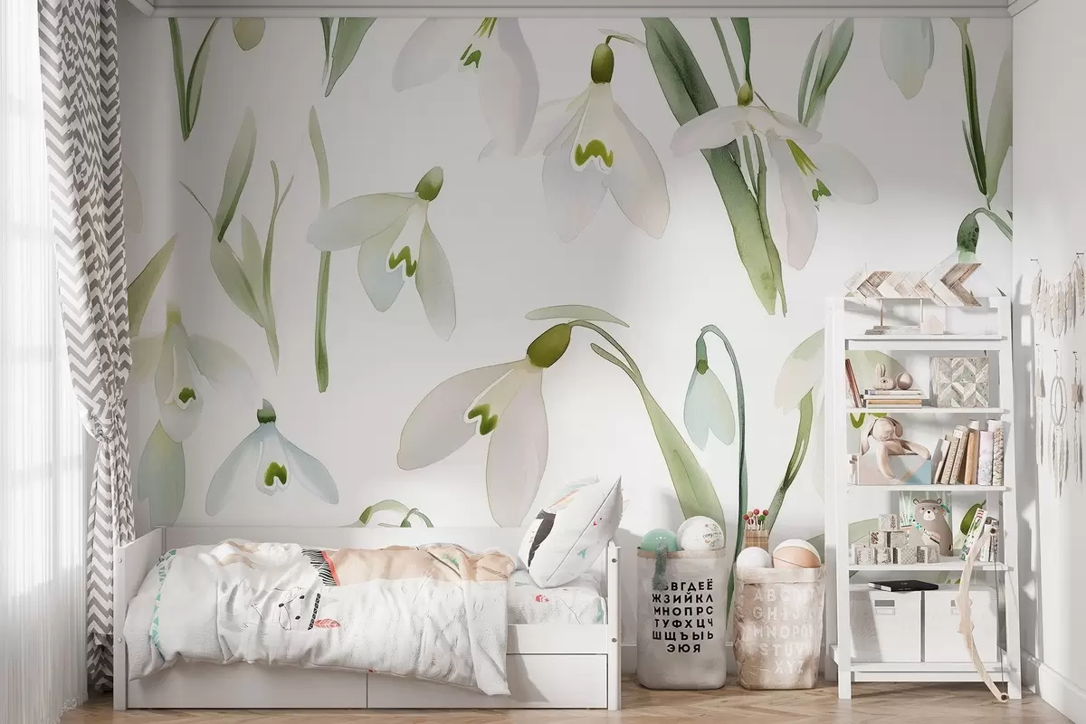 Фототапет Цветя на снежинки в акварелен стил, естествени цветове Nr w03754