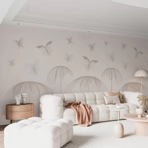 Фототапет минималистичен линеен тапет пеперуди и фонтани на млечен фон Nr w03762