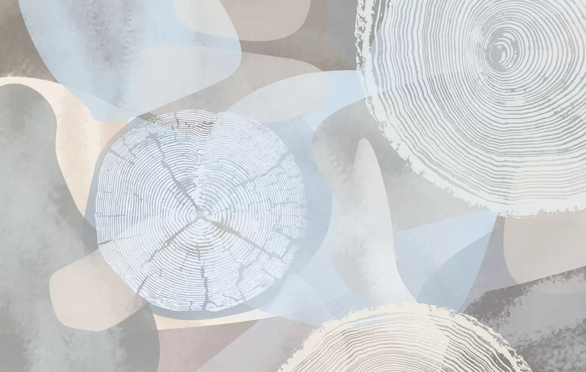 Фототапет модерни абстрактни форми и годишни пръстени на дърветата  w03769