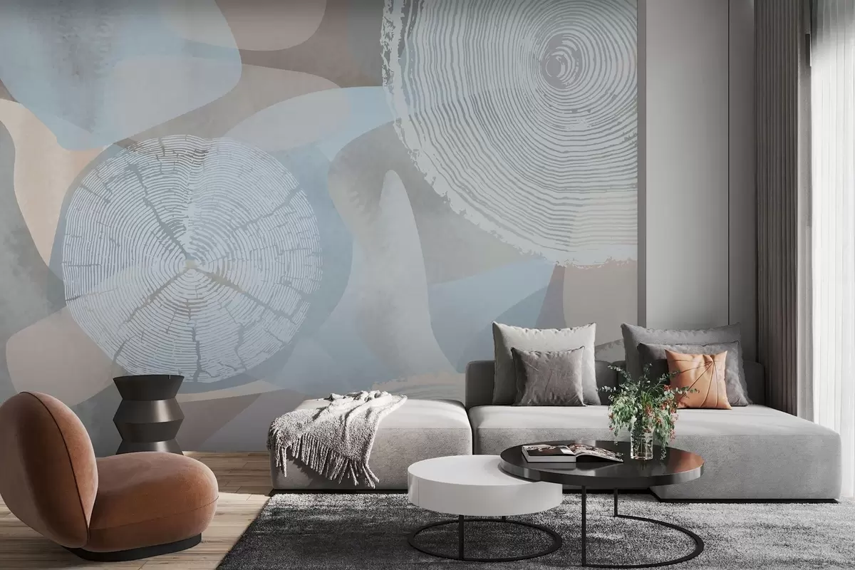 Фототапет модерни абстрактни форми и годишни пръстени на дърветата Nr w03769