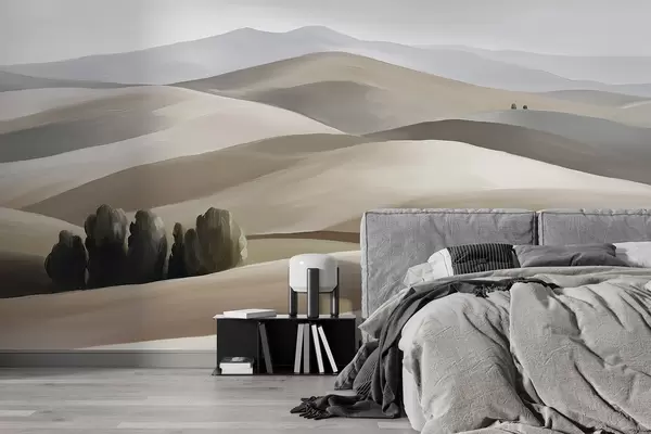 Фототапет Пейзажи с дървета, Тоскана, бежови и сиви цветове, стил масло Nr w03880v1