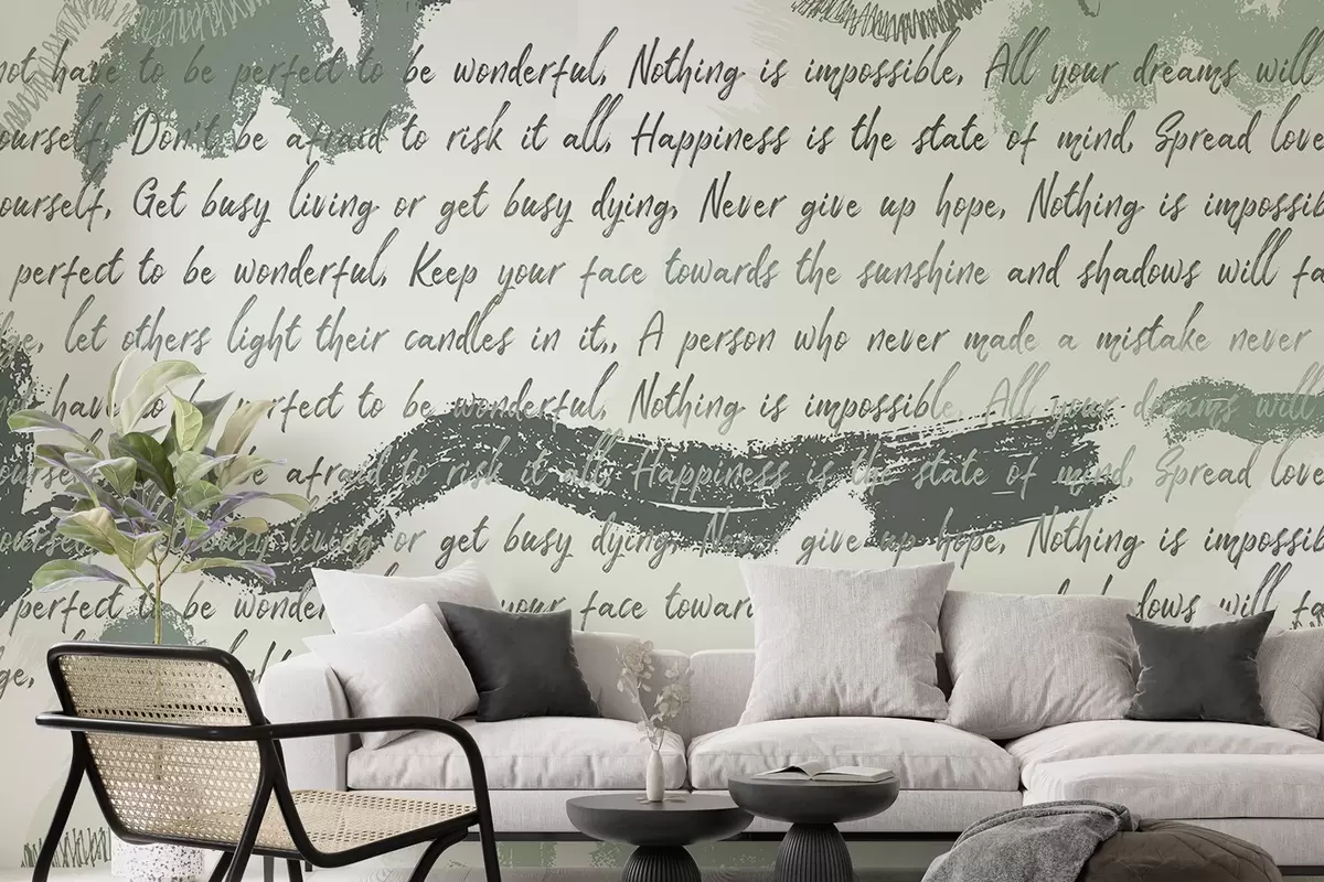 Фототапет Дизайн с вдъхновяващи цитати, абстракция, зелени цветове Nr w03909v1