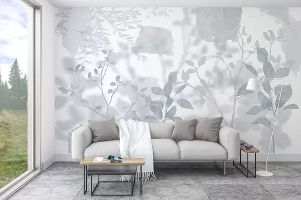 Фототапет Силуети на дървета, клони, природа, акварел, сини цветове Nr w03911v2