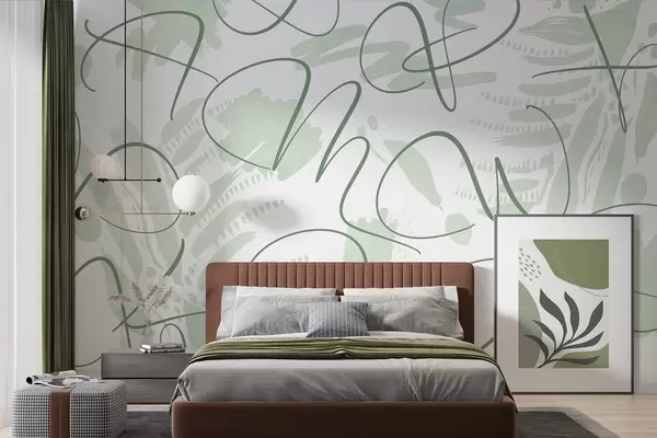 Фототапет Калиграфска абстракция с букви, мазки на четката, зелен цвят Nr w03913v3