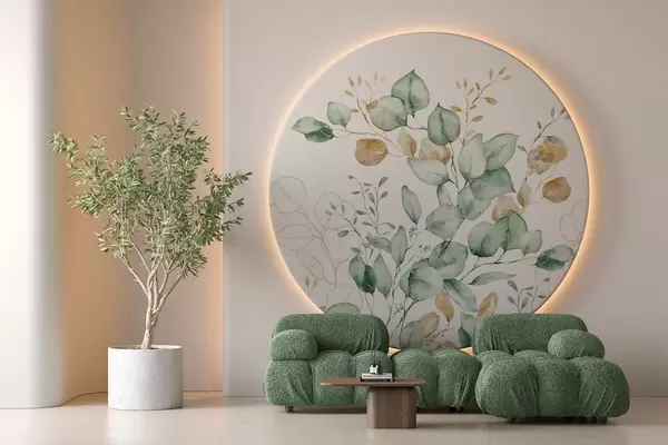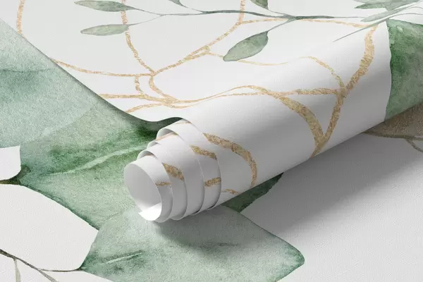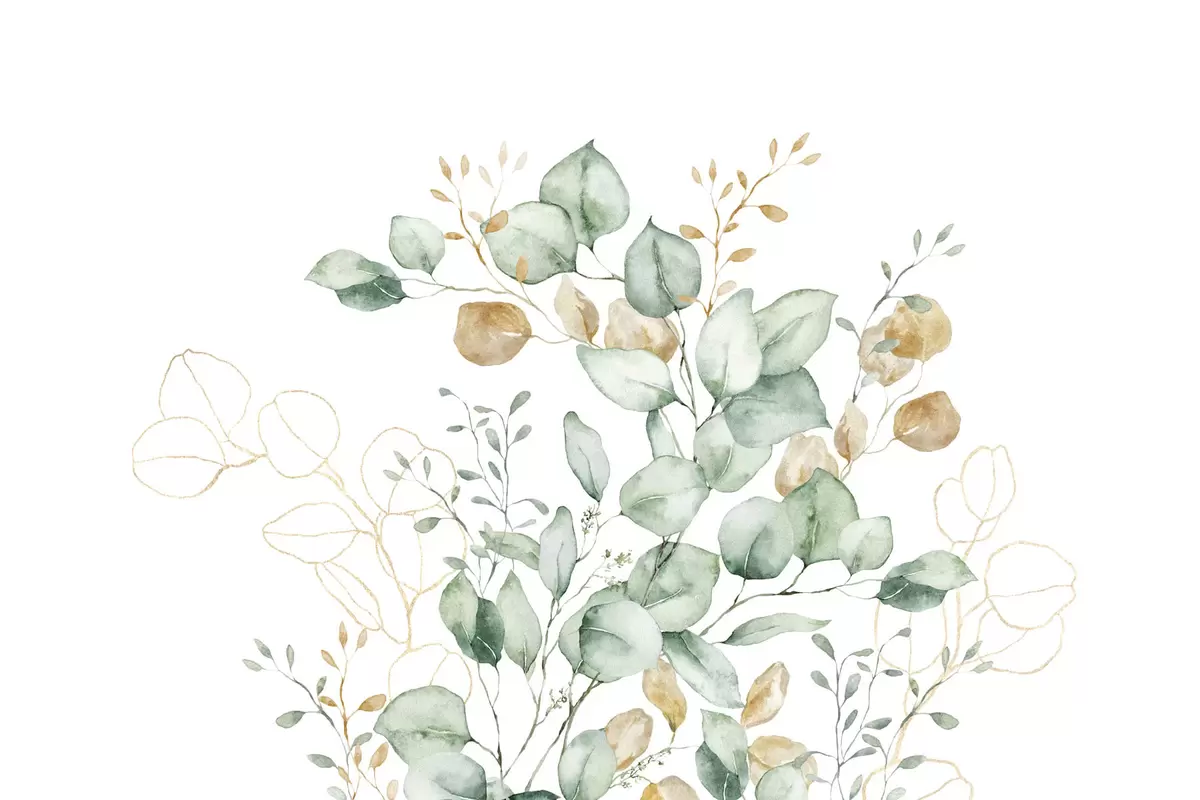 Фототапет Растителност и клони, имитация на акварел с текстура, нюанси на зелено и жълто Nr w03927