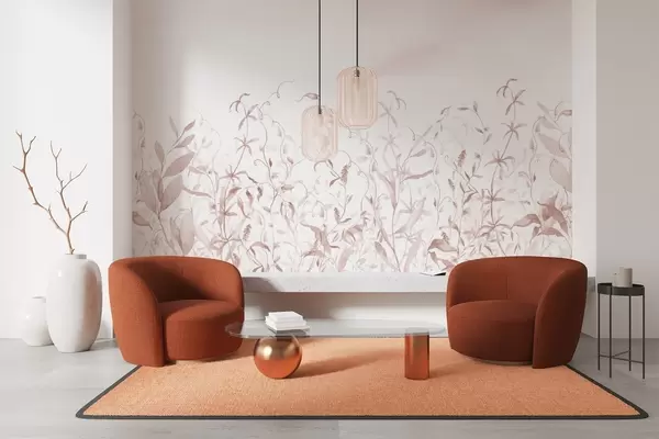 Фототапет Растителност, имитация на акварел с текстура, нюанси на червено Nr w03928