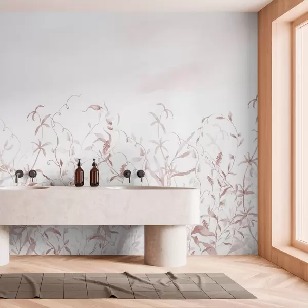 Фототапет Растителност, имитация на акварел с текстура, нюанси на червено Nr w03928