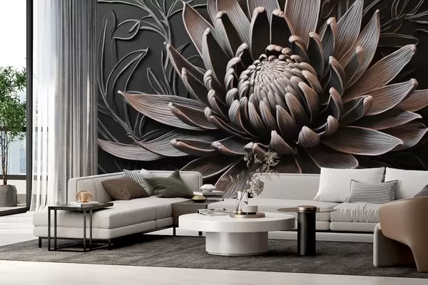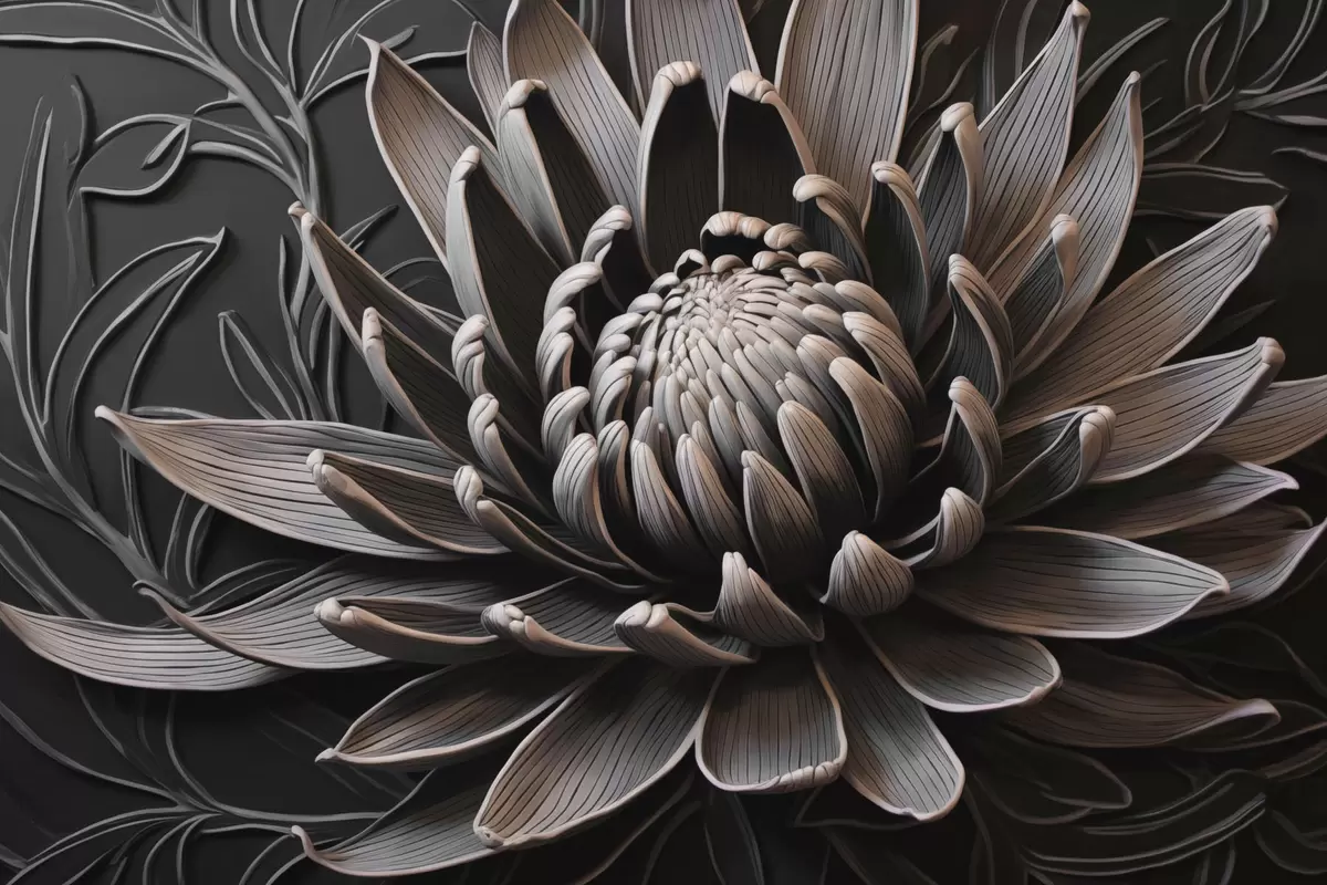 Фототапет Цвете от протея, бежово и черно Nr w03930