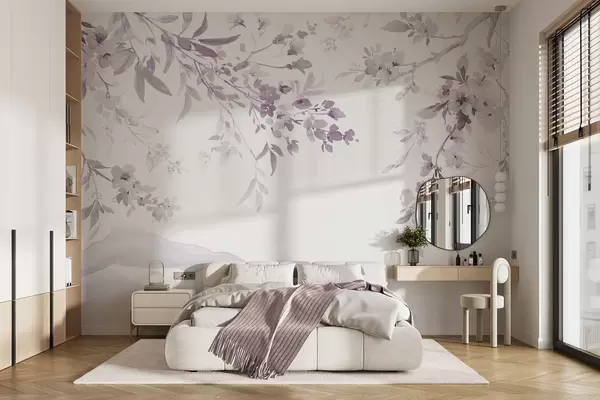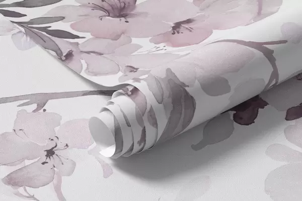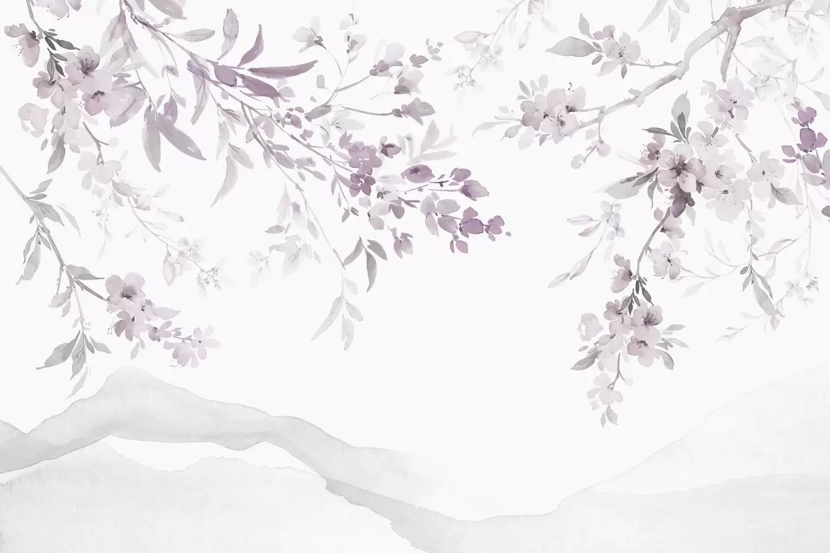 Фототапет Цъфтящи клони, имитация на акварел, лилаво-розови нюанси Nr w03935v1